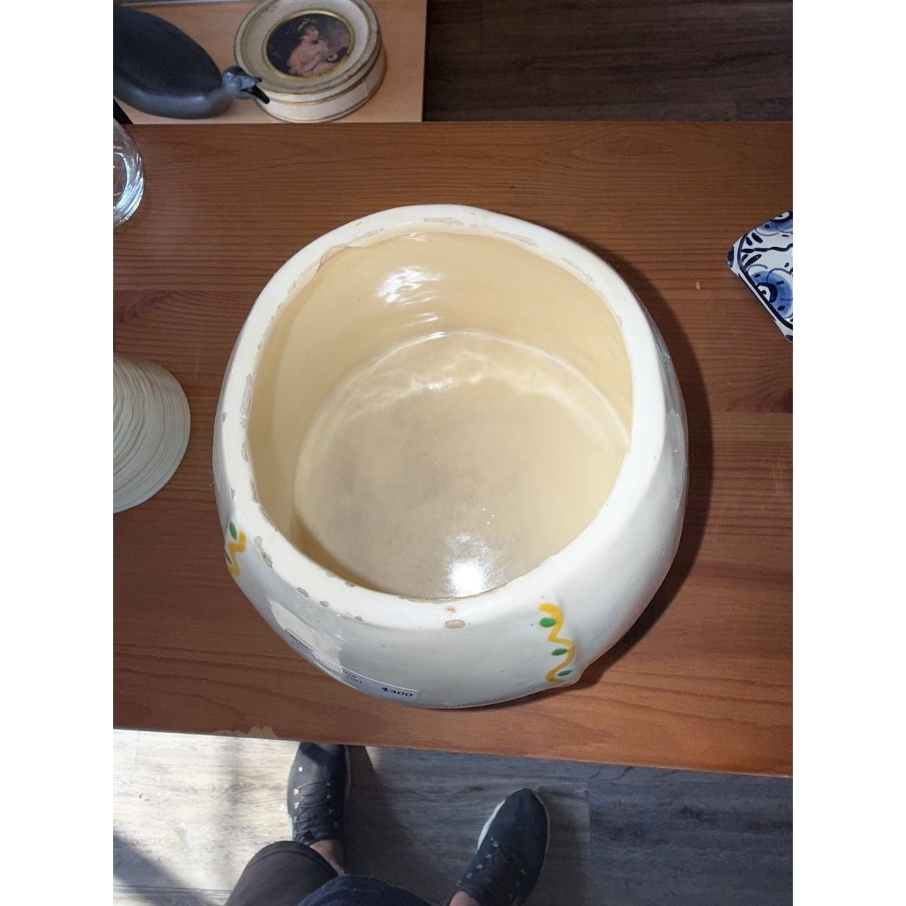 This charming 1940's Brayton Laguna cookie jar showcases a classic Dutch girl design. Vibrant hand-painted floral details and cheerful colors evoke nostalgic charm.