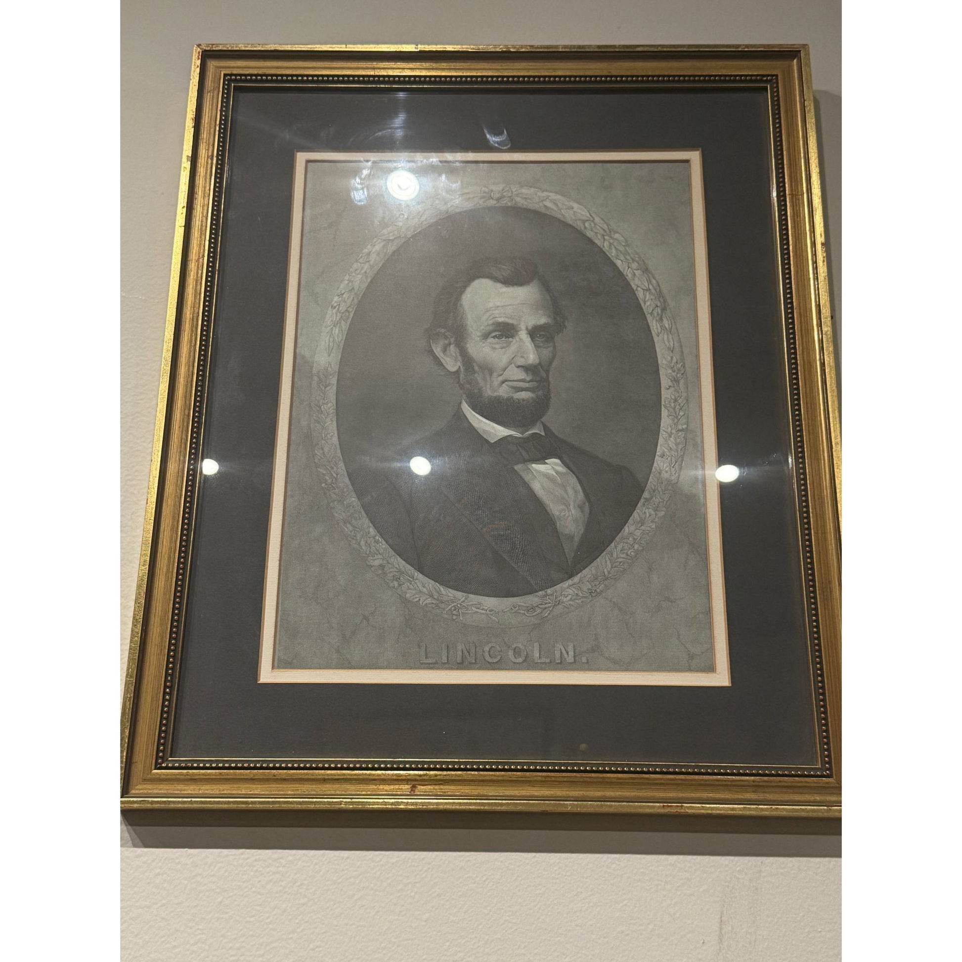 Antique Framed Abraham Lincoln Portrait Print With Gold-Trimmed Frame & Matte Border