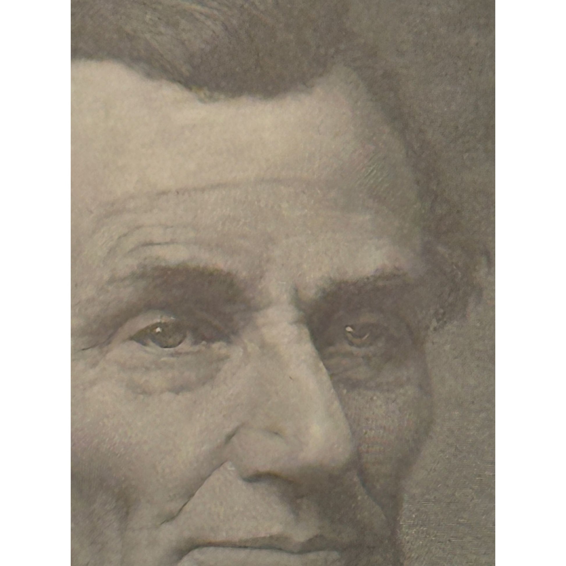 This framed portrait of Abraham Lincoln exudes timeless sophistication with its intricate detailing and classic gold-trimmed frame, showcasing a vintage charm.