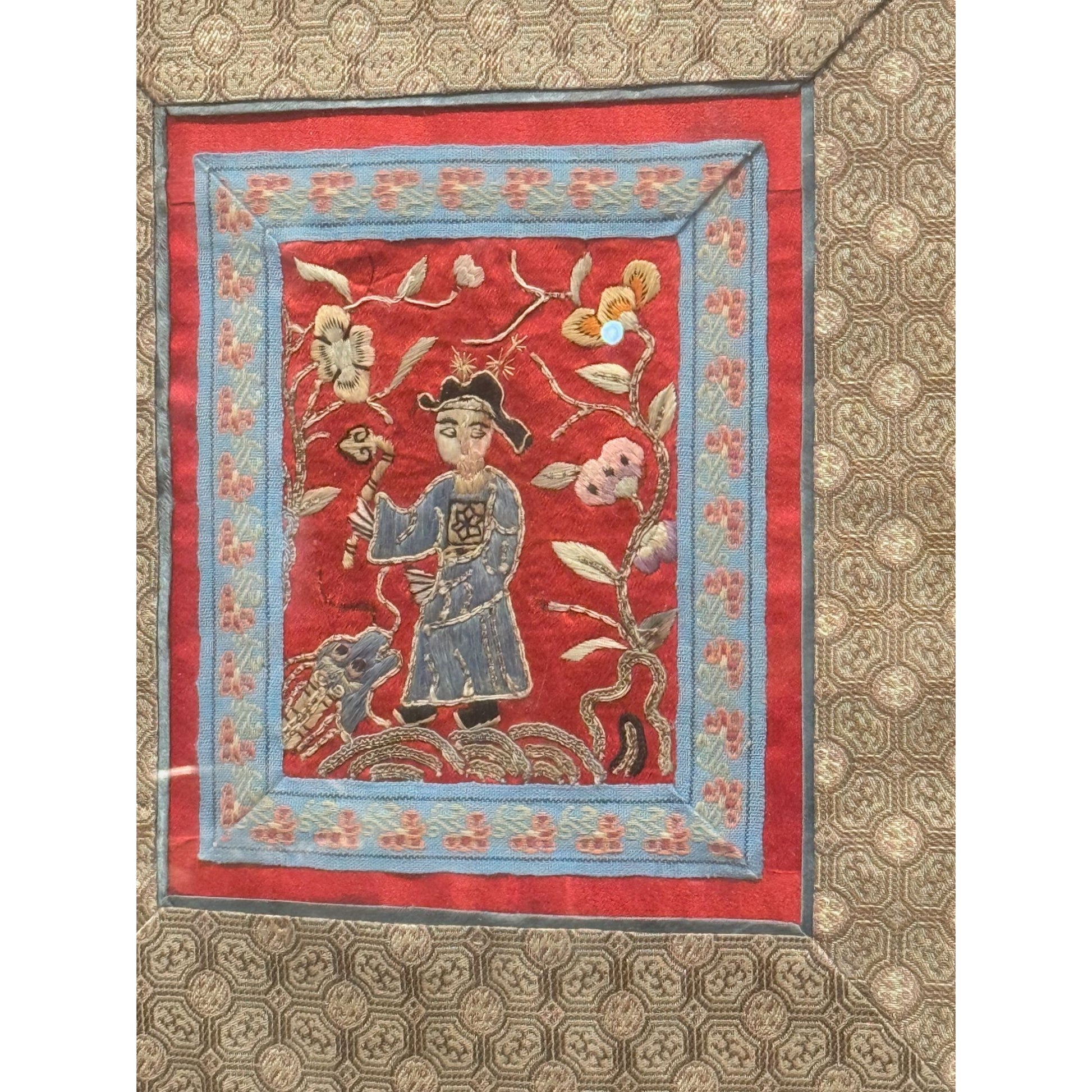 Chinese Silk Embroidery Art In Black Frame With Red Velvet Matting