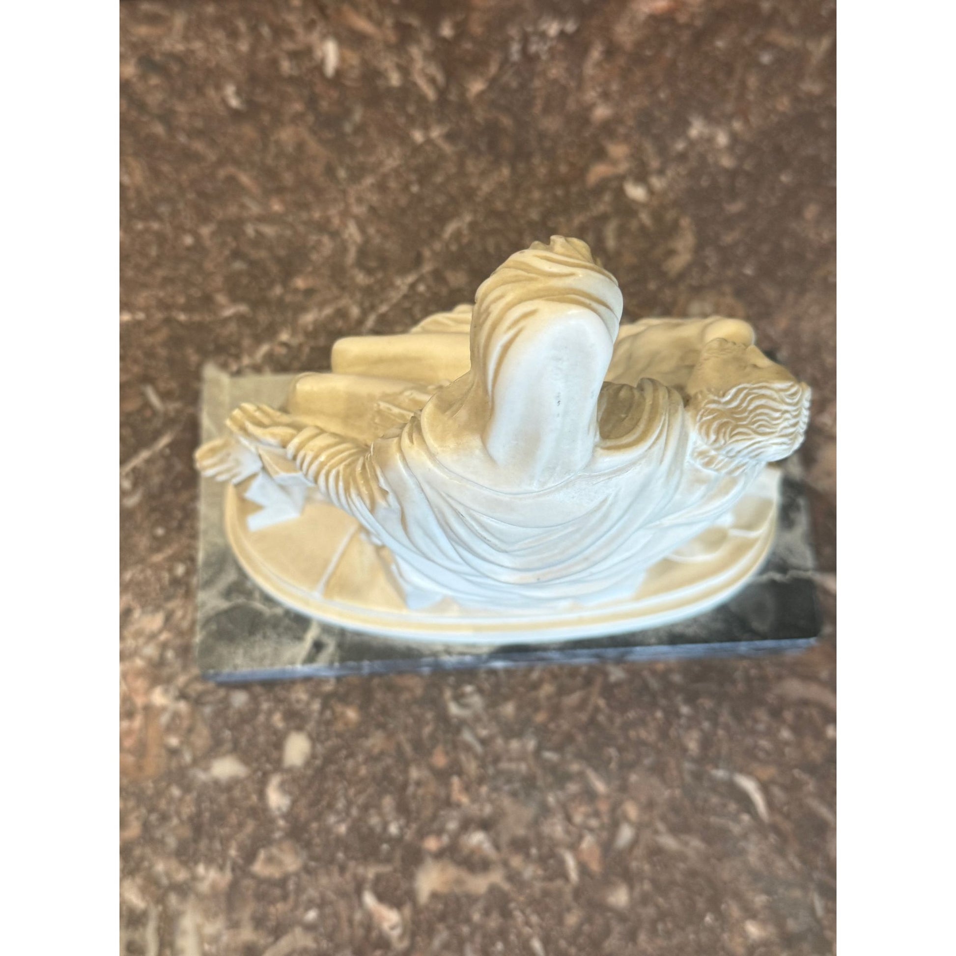 Base shows minor scuffs. Figurine height = 7 inches, marble base = 7" x 4".