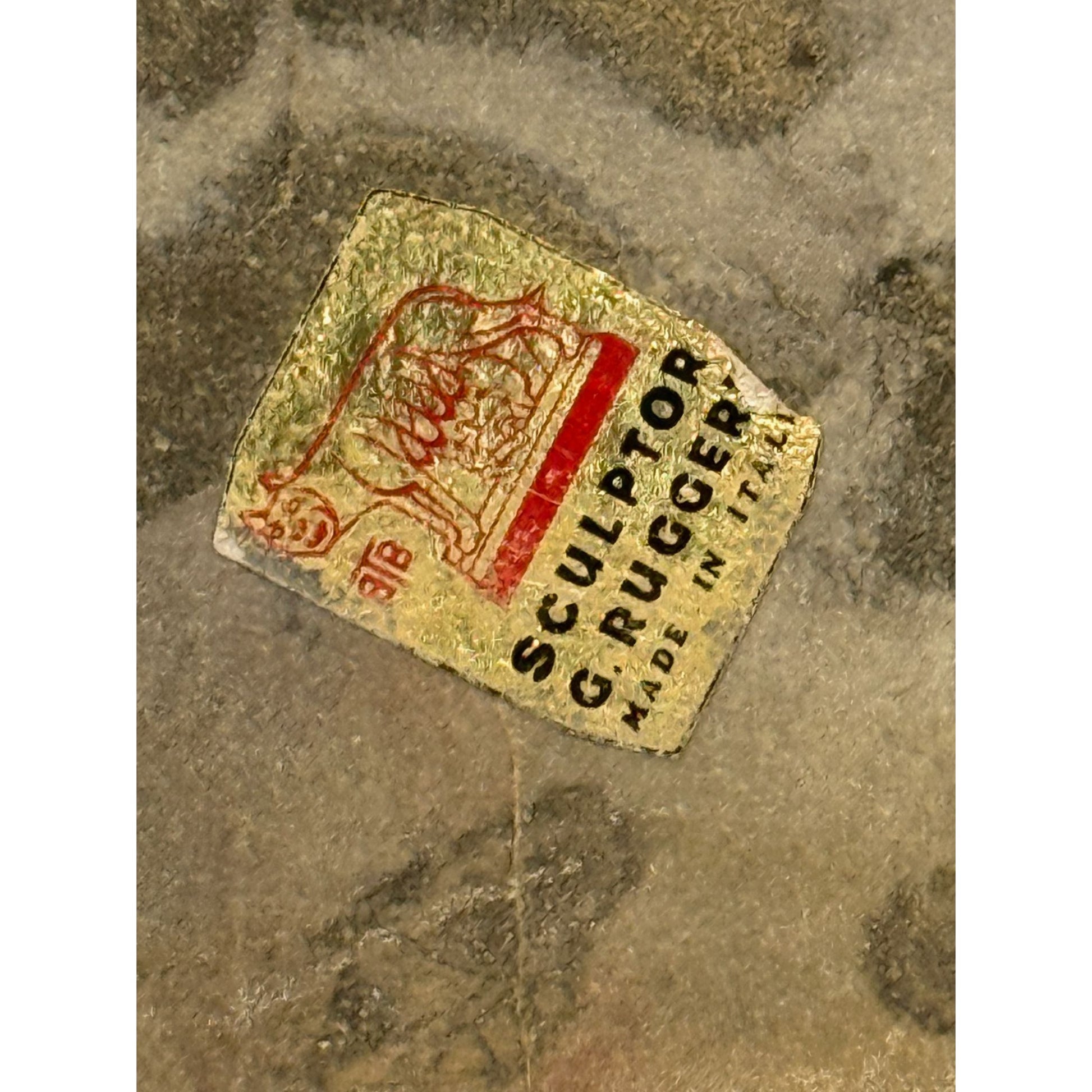 This delicate replica of Pieta by Michaelangelo has intricate detailing, making it a timeless piece of religious art. Resting on a striking marble base, it exudes antique charm. Piece is signed by the 1960's Italian artist G. Ruggeri.