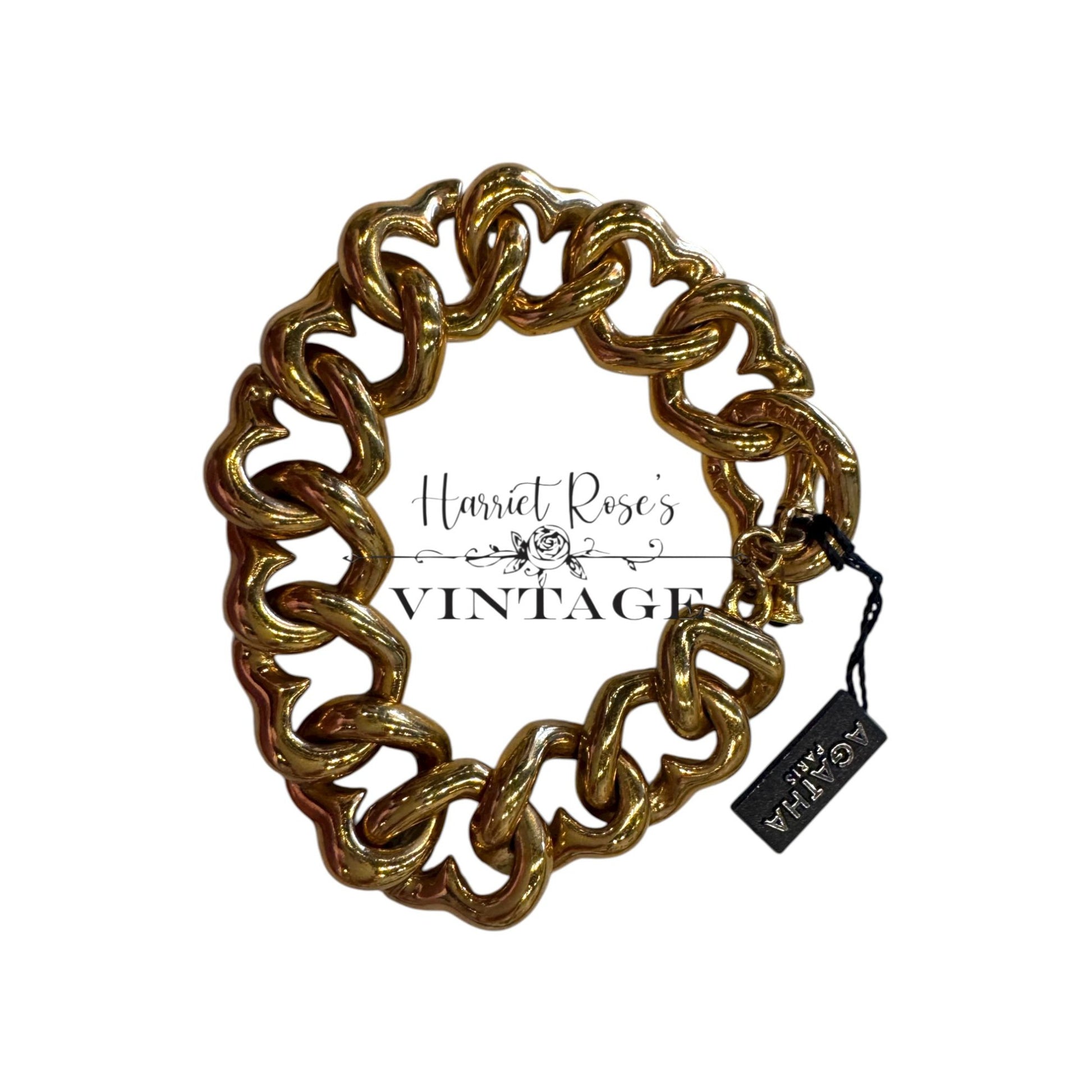 This vintage Agatha Paris bracelet exudes timeless elegance with its chunky gold-plated chain links and secure toggle clasp, showcasing sophisticated craftsmanship.