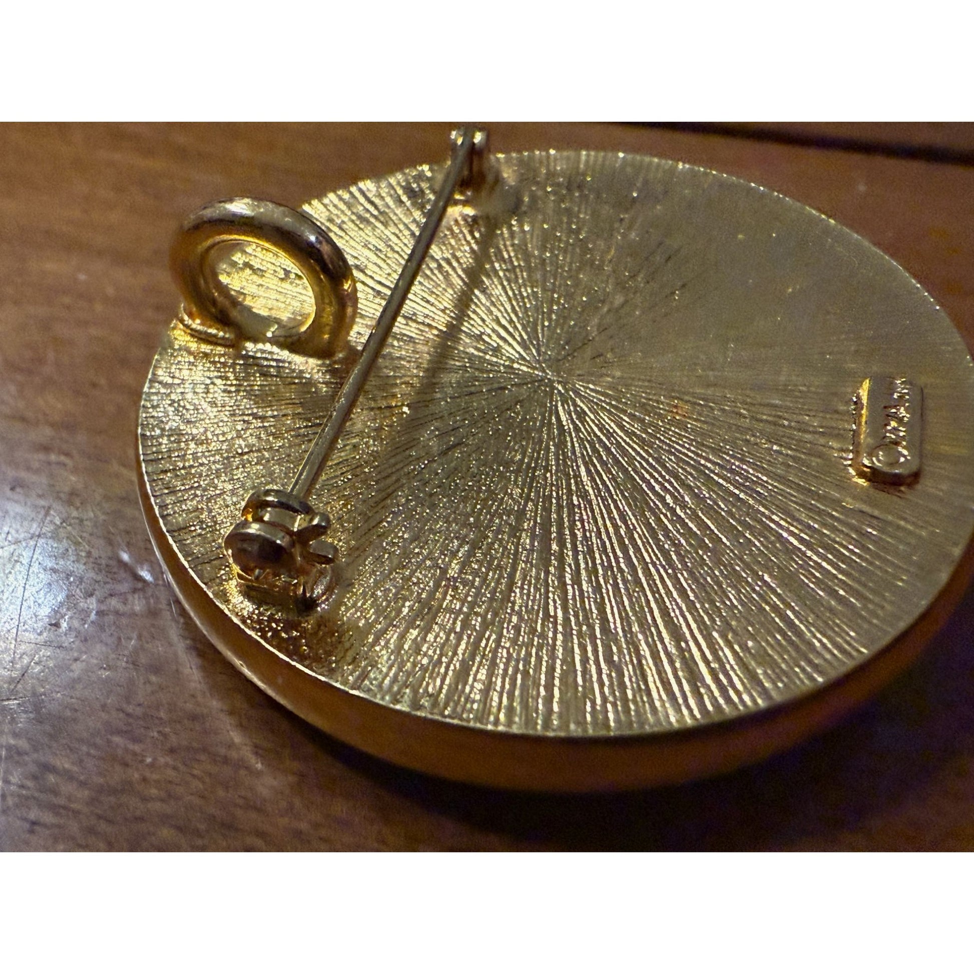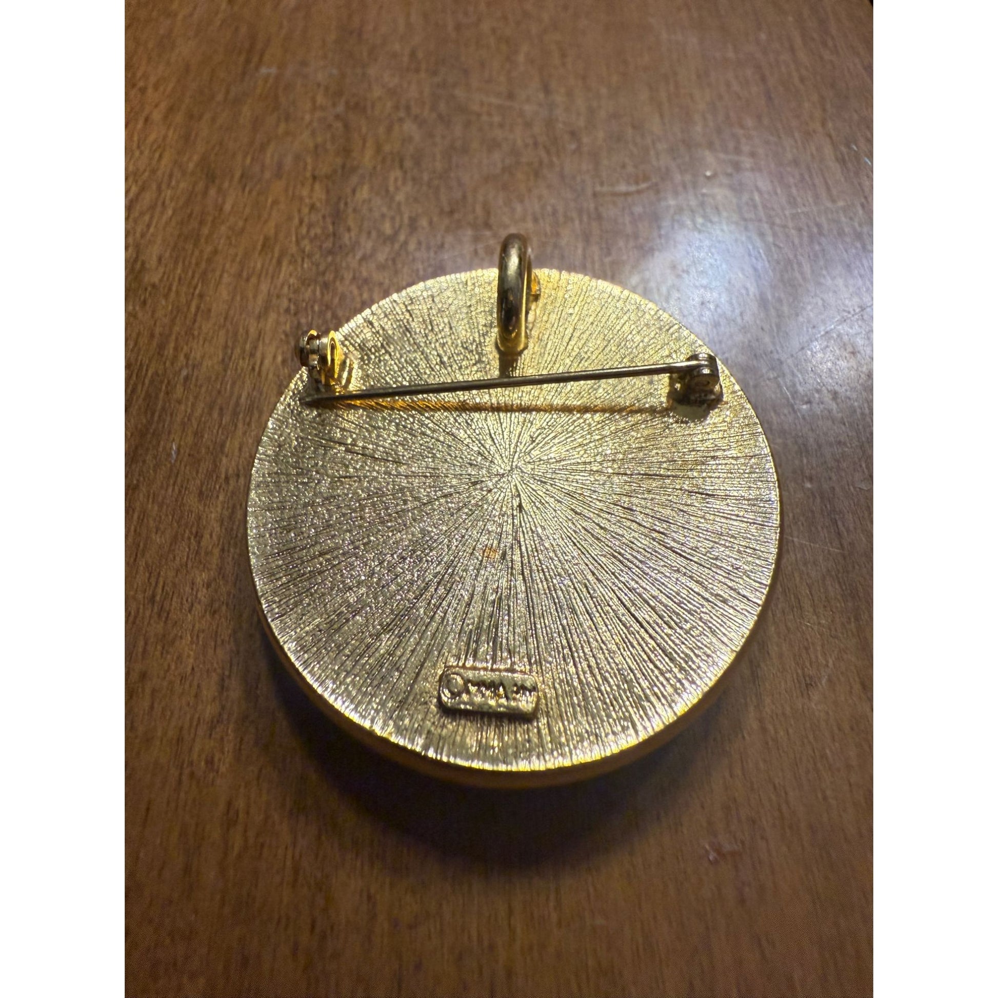 Vintage Metropolitan Museum Of Art - Purple Faceted Glass & Gold Tone Round Convertible Pendant Brooch